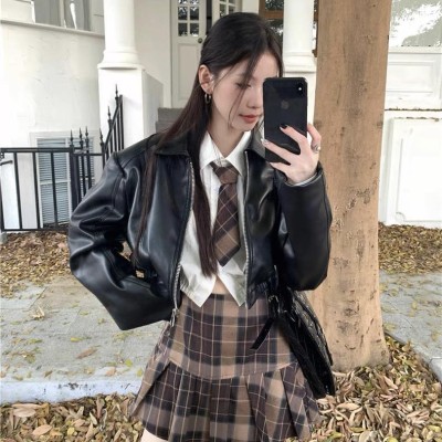 别致小香风上衣+高腰A字裤裙套装
