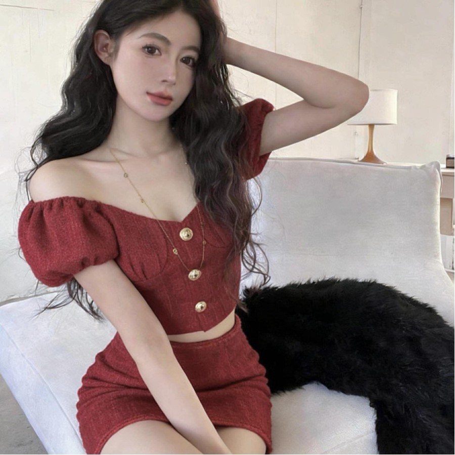 L-Top-Bust: 86cm Waist: 74cm Length: 29cm Sleeve length: 17cm