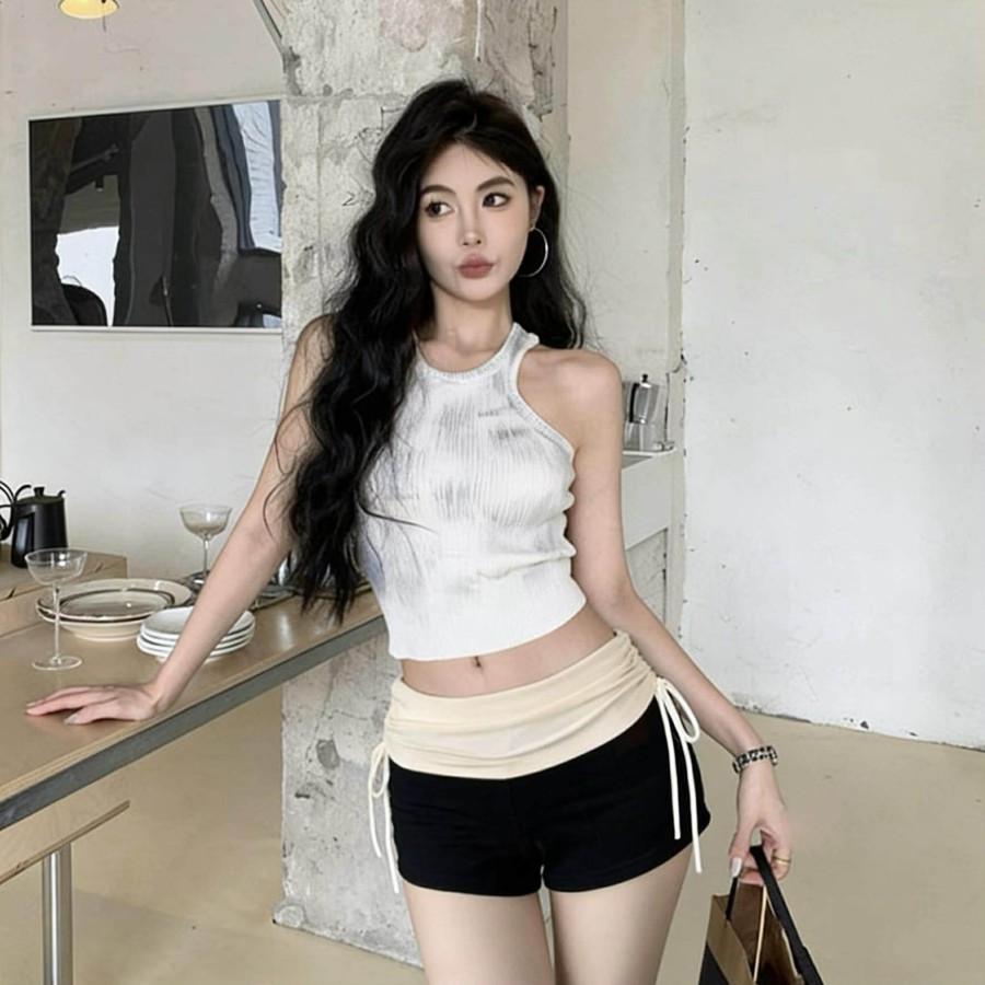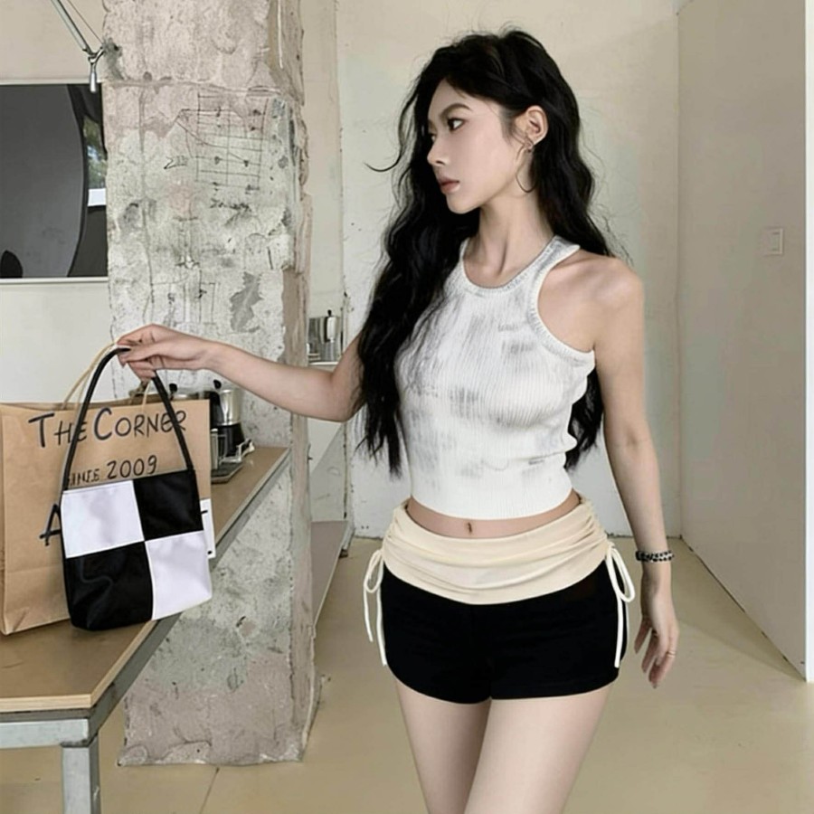 Casual contrasting drawstring hip shorts