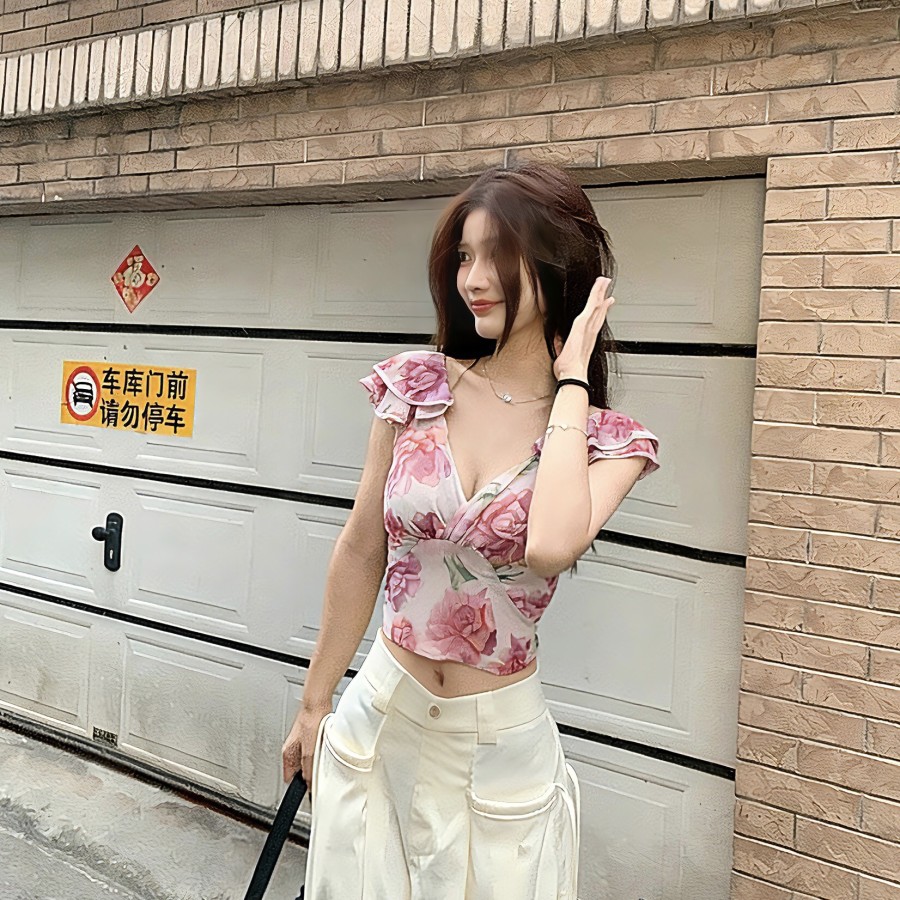 -45% French floral chiffon shirt
