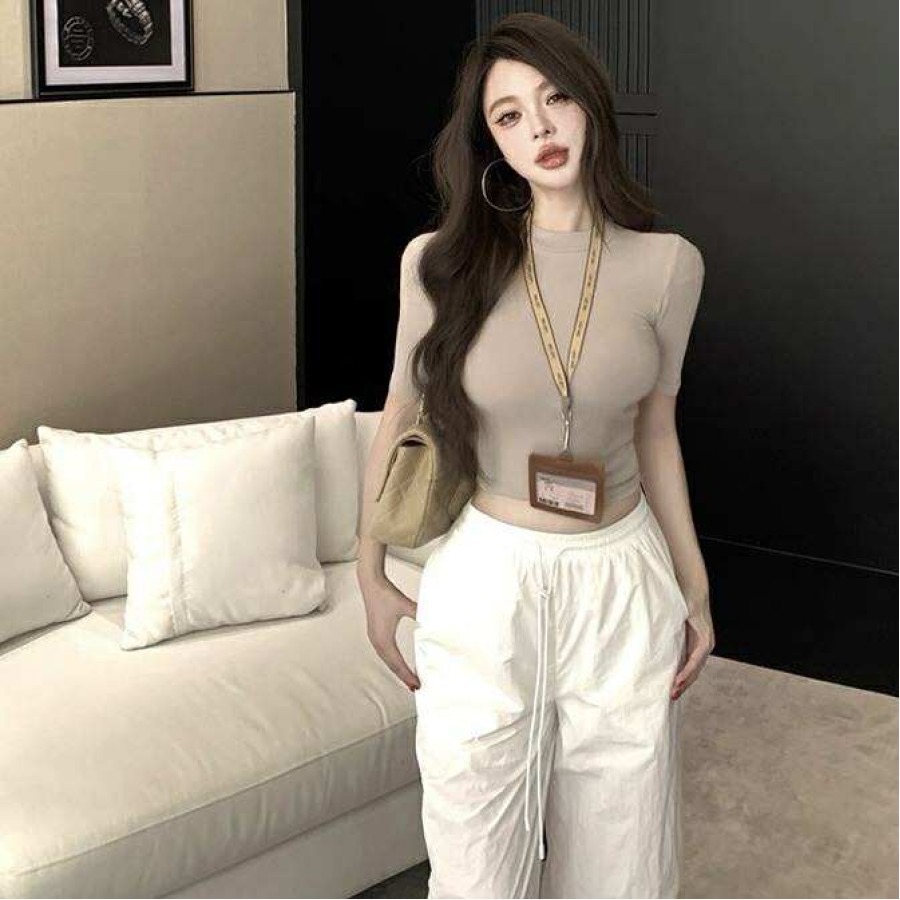 Half-Mount Neck Slim-Fit Half-Sleeve Top