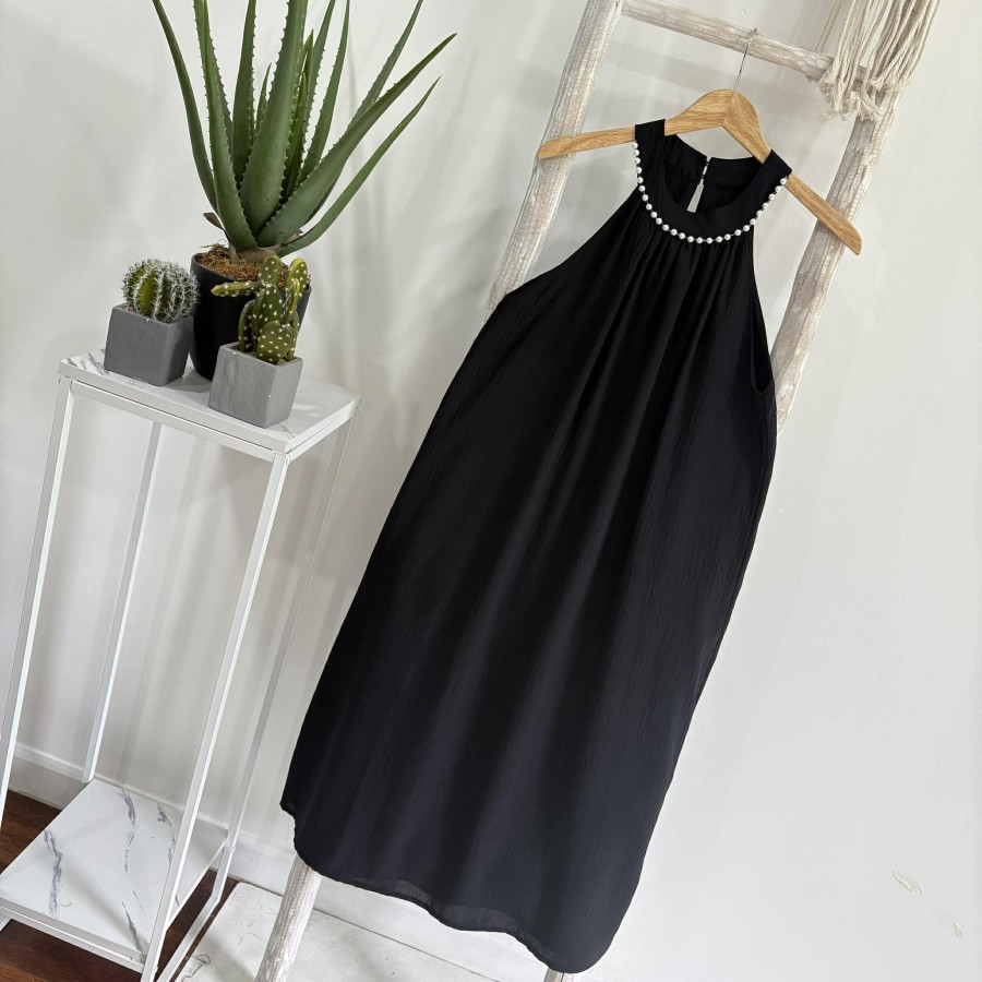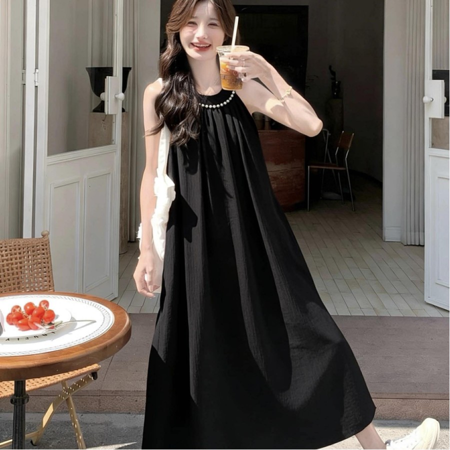 Halter Neck Pearl Loose Dress