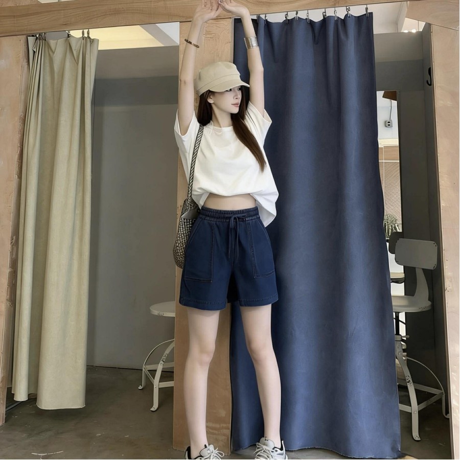 High-waisted wide-leg plastic short pants