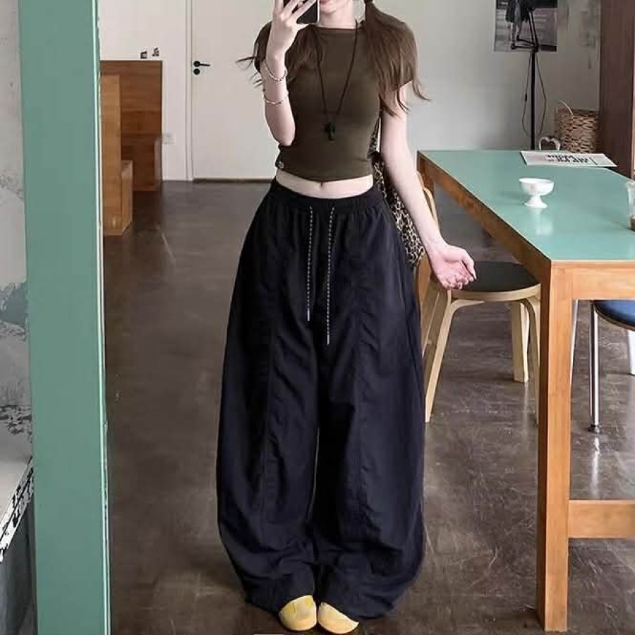 【PREORDER】High-waisted drawstring wide-leg trousers