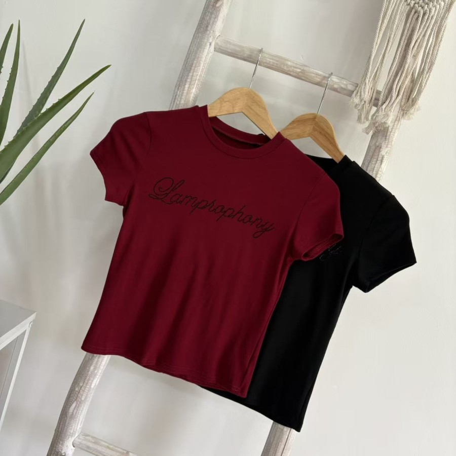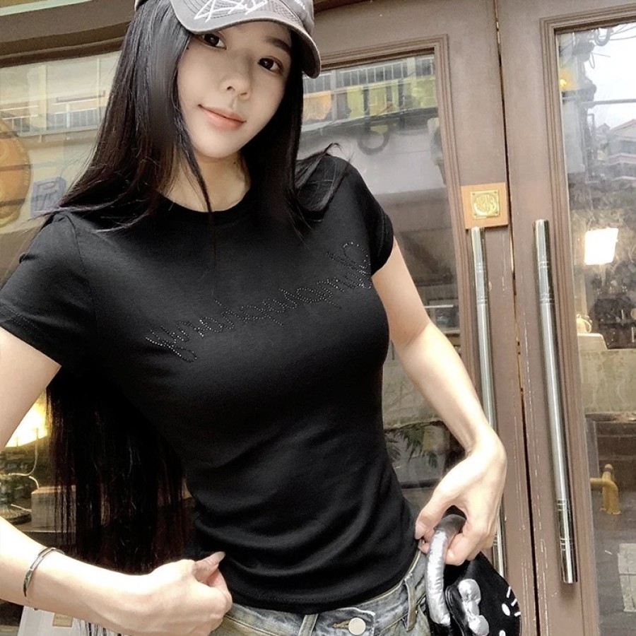 Round Neck Rhinestone Slim Fit Top