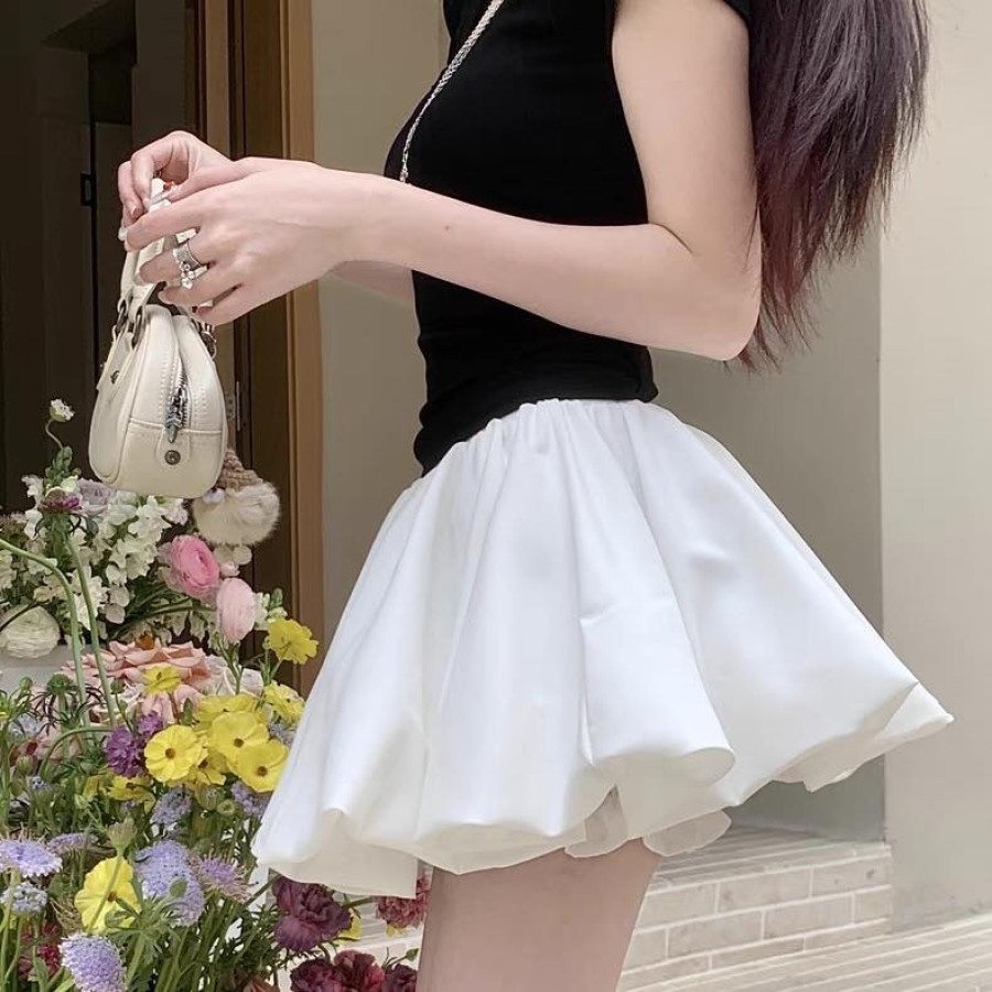 High-waisted A-line flower bud pants skirt