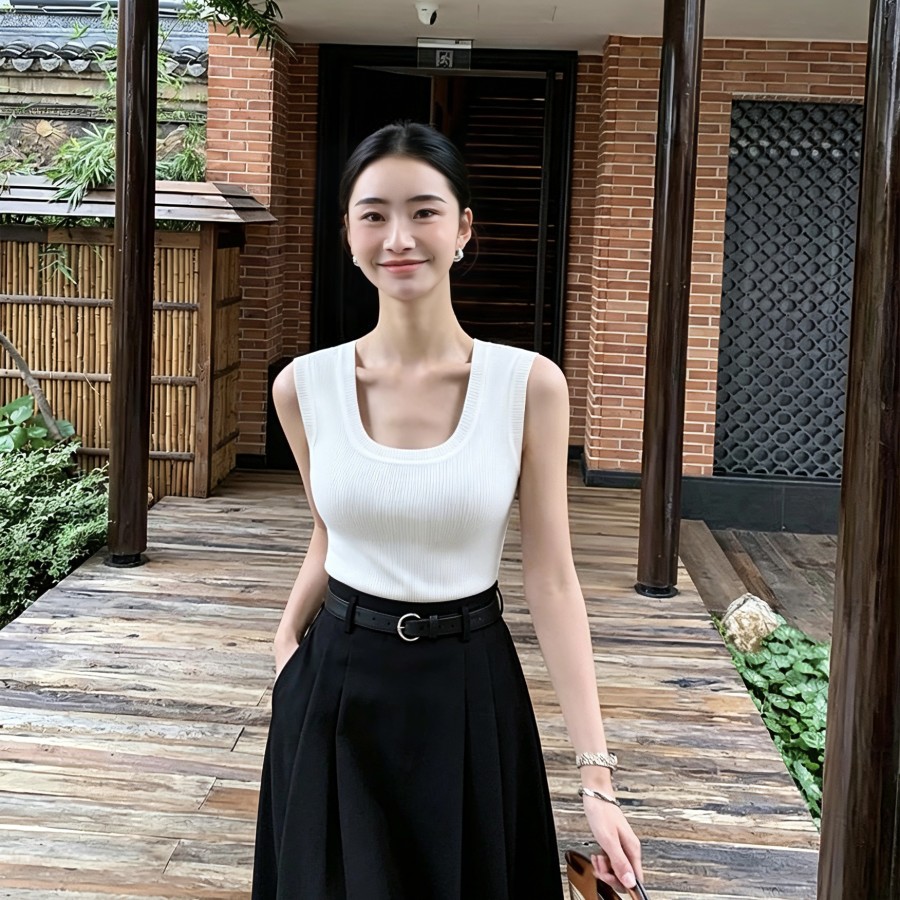 黑色高腰西装半身裙