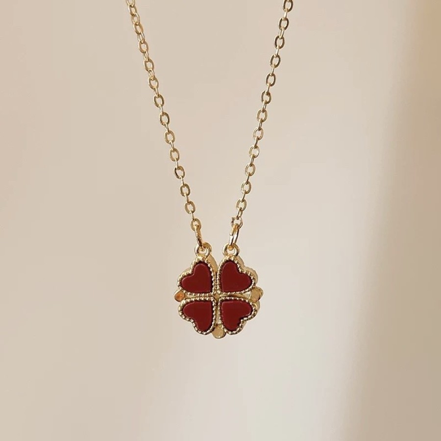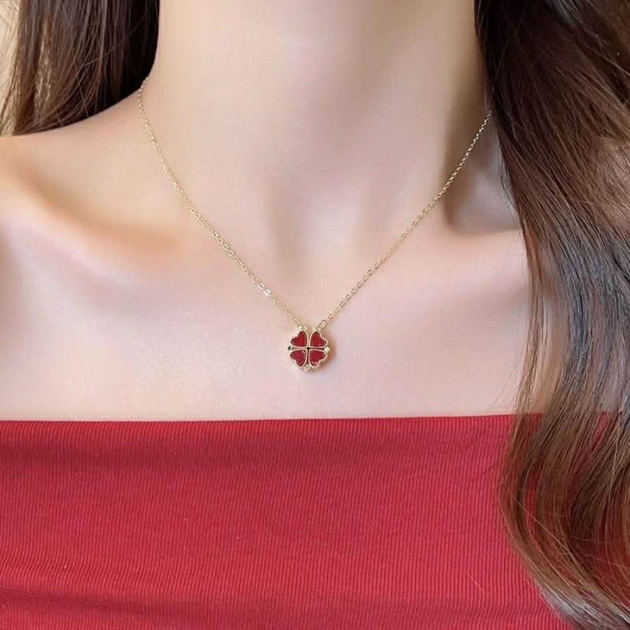 两戴四叶草锁骨项链