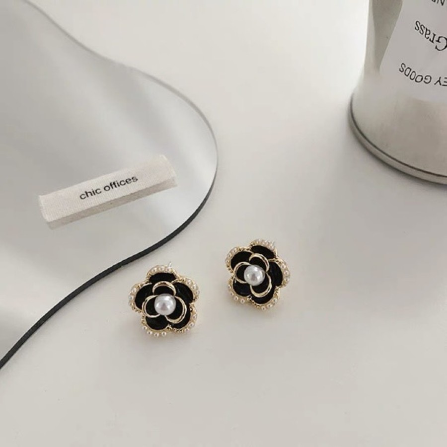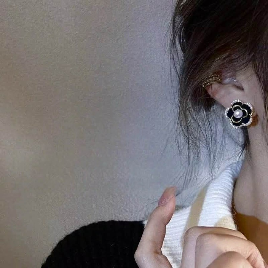 赫尔本山茶花珍珠耳钉