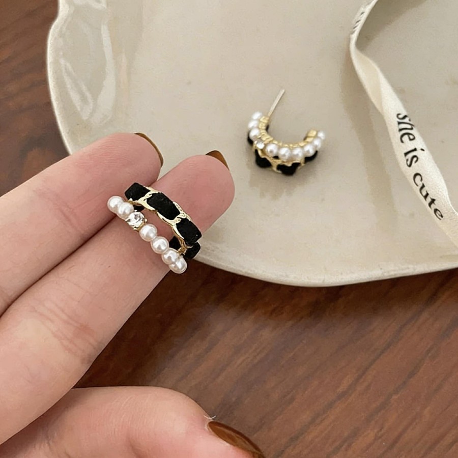 丝绒珍珠C型耳环
